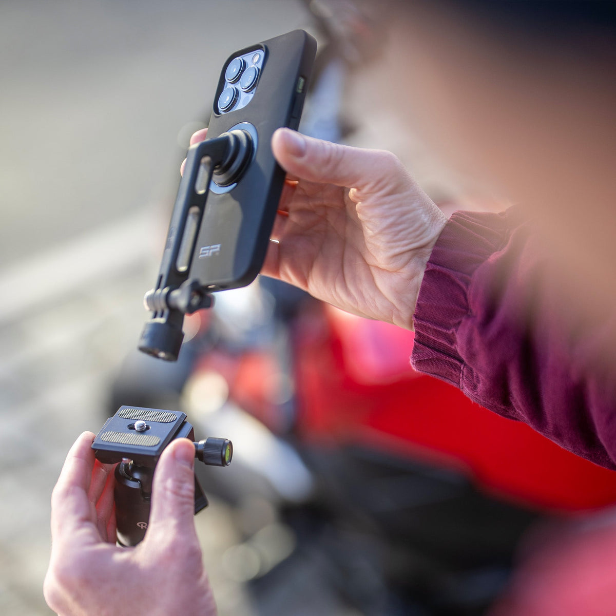 Leave the DSLR camera at home and attach your phone to a tripod head instead to shoot time-lapses or long exposures. The 1/4''-20 adapter also lets you attach your phone to all kinds of vlogging and video rigs. Mount your phone in portrait or landscape mode with a simple 90° rotation.