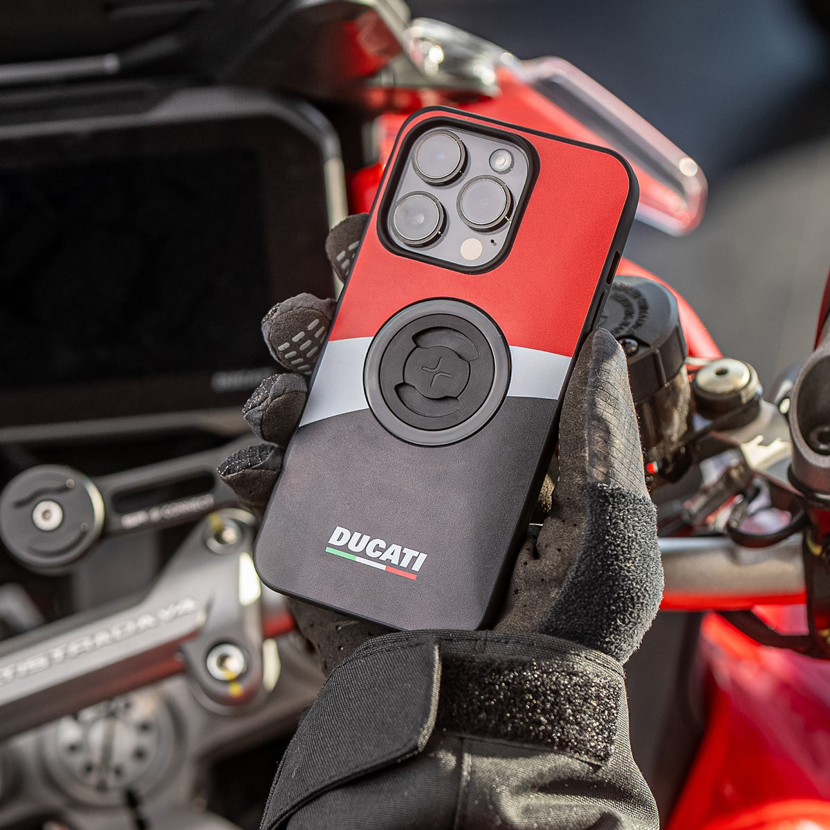Red, white, and black print on the case with a subtle Ducati logo – this officially licensed Ducati Phone Case Xtreme from SP Connect is impressive!