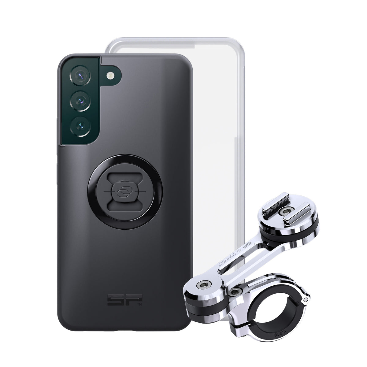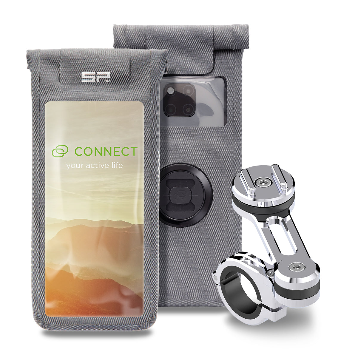 Mount your smartphone securely to the motorcycle handlebars in just a second with the Moto Bundle Chrome. With SPC Universal Phone Case.