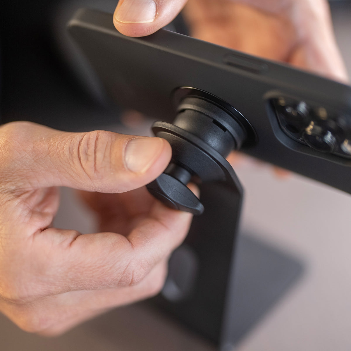 The new home base for your device. With the Office Stand you get a practical phone holder on your table. Whether in the office or at home: quickly attach your SP ConnectTM Phone Case to the desk mobile phone holder with a simple 90° turn.